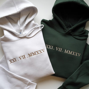 Discover our embroidered hoodies, including the unique Embroidered Roman Numeral Sweatshirt, perfect for personalized gifts for couples. Shop our range of customized sweatshirts and custom couples hoodies , ideal for cotton anniversary gifts and anniversary gifts by year. Design your custom embroidered hoodie today!