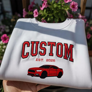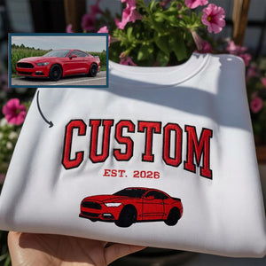 Custom Embroidered Hoodie: Car Varsity From Your Photo, Car Photo Embroidered, Personalized Race Car Sweatshirt, Gift for Him