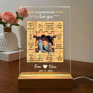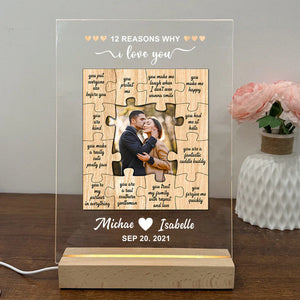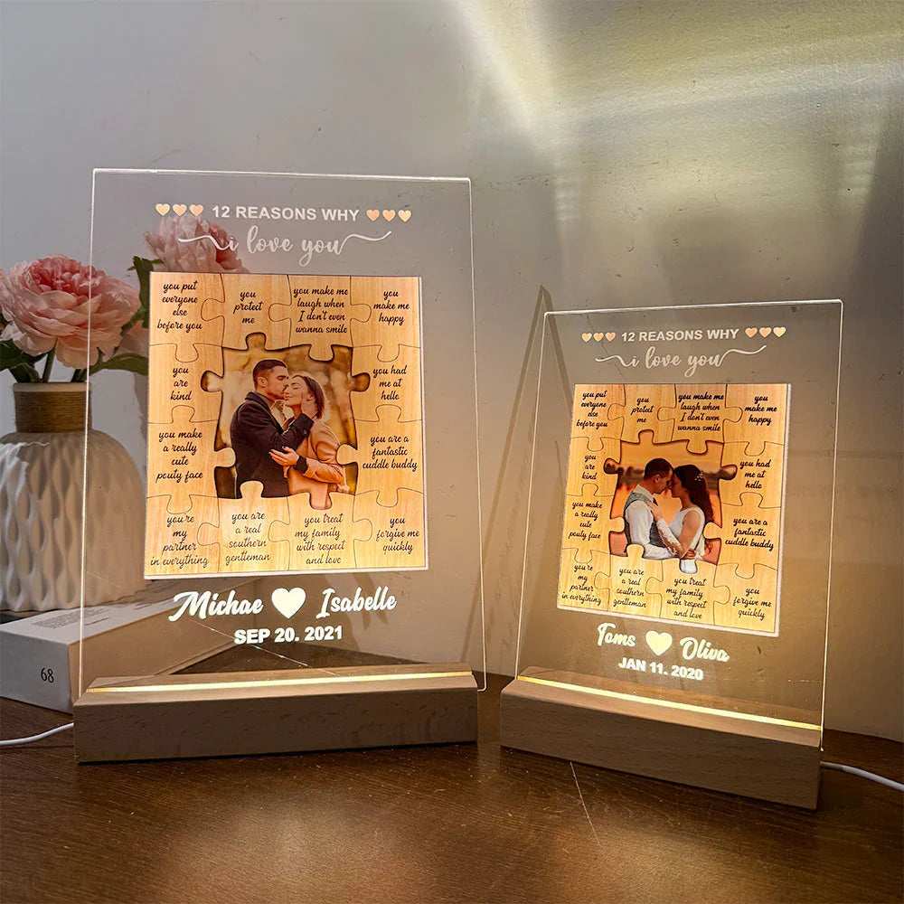 12 Reasons Why I Love You Puzzle Custom Photo LED Acrylic Night Light